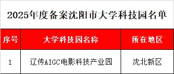 近日,沈阳市科技局对2025年度备案沈阳市大学科技园名单予以公示,辽传AIGC电影科技产业园成功备案市级大学科技园。