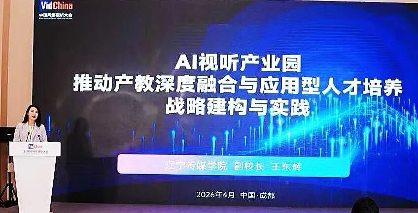 近日,第十三届中国网络视听大会在成都隆重举行。本次大会由国家广播电视总局、四川省人民政府联合主办,是我国网络视听领域规格最高、规模最大、影响力最广的国家级行业盛会。我校王东辉副校长应邀参会,并在“视听筑梦·智汇人才”网络视听产教融合建设论坛作题为《AI视听产业园推动产教深度融合与应用型人才培养的战略建构与实践》的主题发言,向全国业界展示我校产教融合创新成果与AI传媒教育实践。