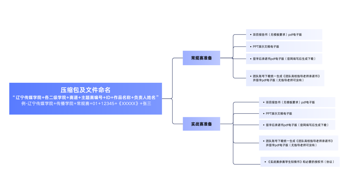2.压缩包及文件命名均为“辽宁传媒学院+各二级学院+赛道+主题赛编号+ID+作品名称+负责人姓名”