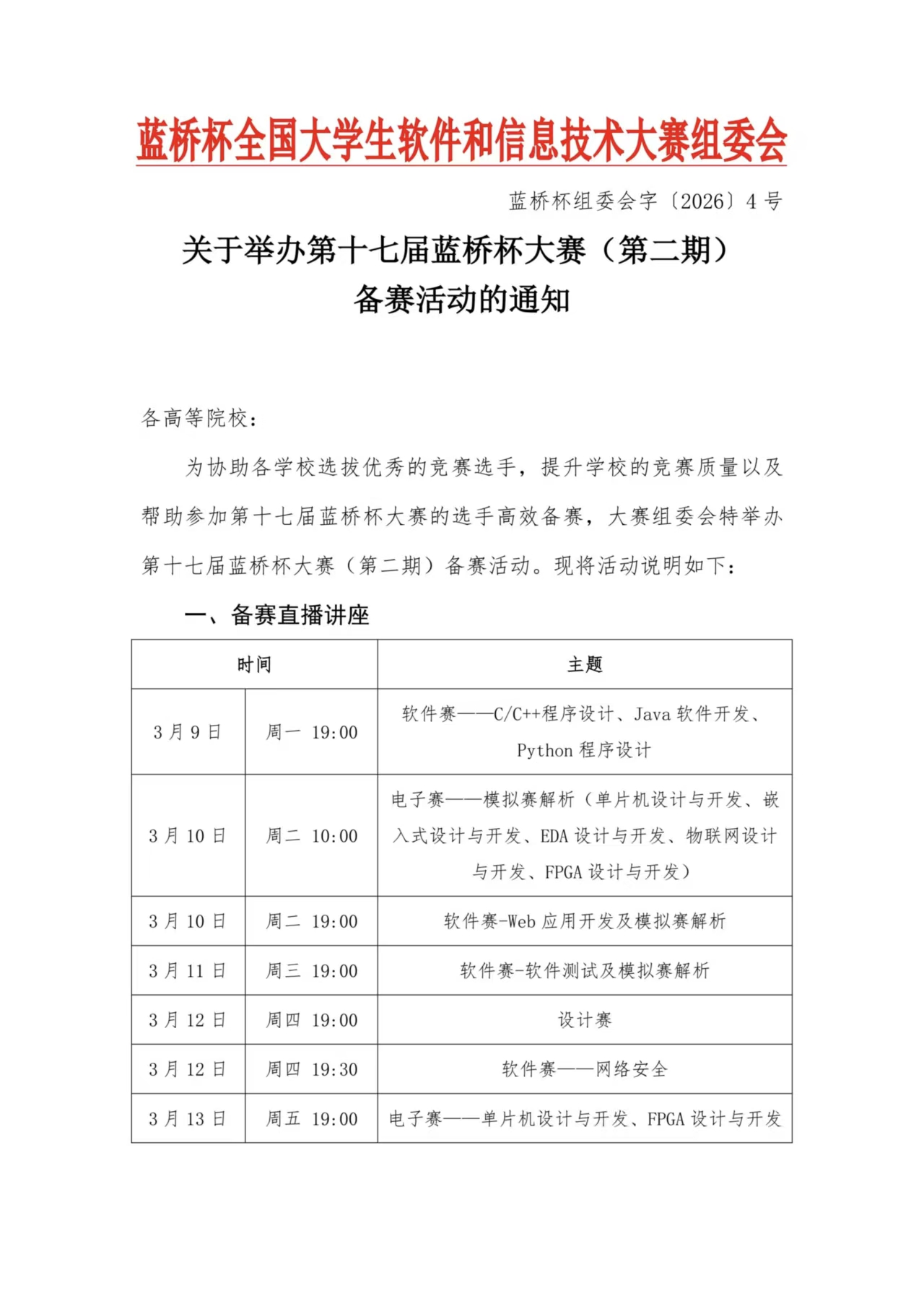 【竞赛通知-2026007】第十七届蓝桥杯全国大学生软件和信息技术大赛