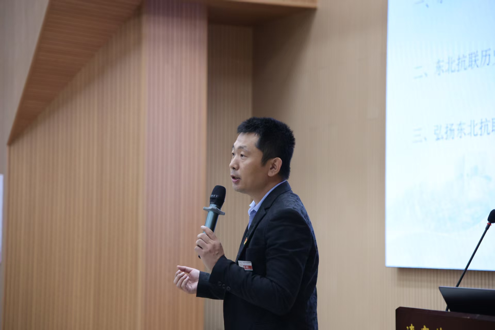 授课过程中,宋博副院长以“弘扬东北抗联精神,助推辽宁振兴发展”为核心主题,系统梳理东北抗联的奋斗历程,深入解读抗联精神的时代内涵。他从“东北抗联精神内涵、东北抗联历史当代启示、弘扬东北抗联精神、助推辽宁振兴发展”等三个方面,结合抗联将士在极端艰苦条件下坚守阵地、奋勇杀敌的英雄事迹,生动展现了革命先辈的崇高理想与家国情怀。同时,紧密联系青年学员思想实际,引导大家思考“新时代如何传承抗联精神”,通过互动交流激发学员主动思考,让党课既有理论深度,又有情感温度,引发学员强烈思想共鸣。课程紧密结合辽宁全面振兴、全方位振兴实践,将东北抗联精神与区域发展实际深度融合。宋博副院长通过剖析辽宁在产业升级、科技创新、民生保障等领域的生动案例,指出抗联精神中蕴含的“攻坚克难、敢闯敢试”品质,正是推动辽宁高质量发展的宝贵精神财富。他鼓励学员结合传媒专业将抗联精神内化于心、外化于行,把爱国情、强国志、报国行融入辽宁振兴发展大局,以实际行动践行新时代青年的责任担当。