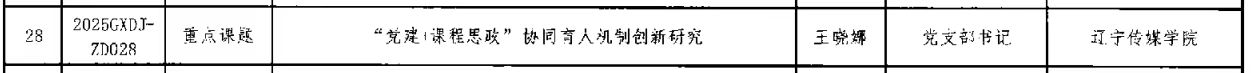 辽宁传媒学院2025年度辽宁省高校党建研究课题立项取得丰硕成果