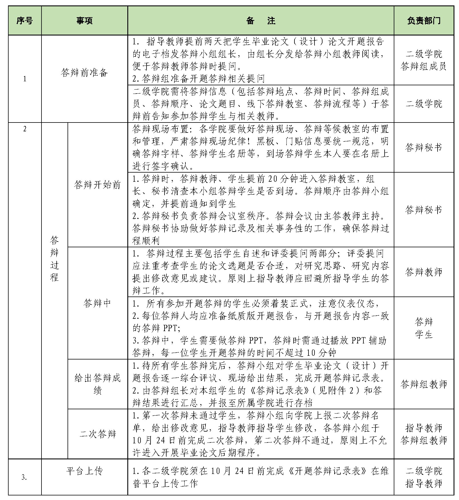 (注:学院可以根据实际情况调整安排,以报送至教务处答辩安排表为准。教务处、督导处将按照上报的答辩安排表进行督导检查。)