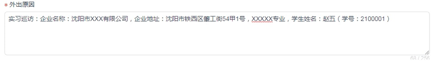 实习巡访:实习巡访企业名称: + 实习巡访企业地址: + 巡访学生专业 + 巡访学生姓名(学号:)