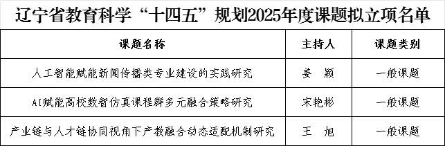 近日,辽宁省教育科学规划领导小组办公室发布公示,我校3项课题获批辽宁省教育科学”十四五”规划2025年度课题立项。