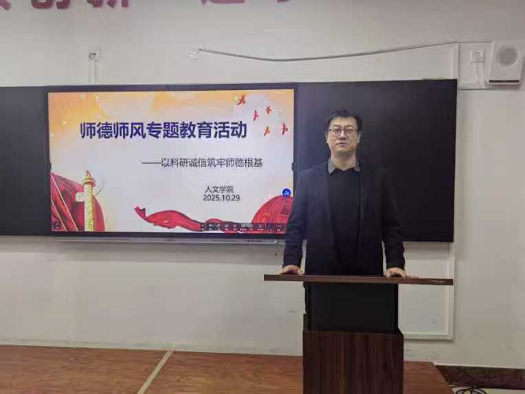 为强化师德师风建设与教学实践融合,深入学习党中央教育精神。人文学院于2025年10月29日召开师德师风建设与教学工作交流会。本次会议目的在于强化教师责任意识,坚守教育初心,促进学院教学与育人水平的进步提高。
