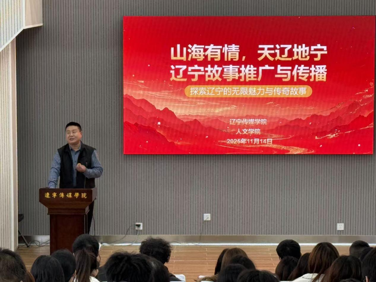 11月14日下午,人文学院举办“山海有情,天辽地宁——辽宁故事推广与传播”主题讲座。此次讲座以深耕辽宁厚重文化沃土、讲好辽宁故事为核心,助力我校学子提升文化传播专业能力,推动辽宁故事推广与传播。