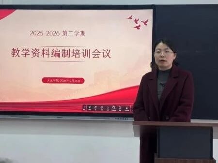 为进一步规范教学材料管理,提升教师教学材料编制质量,夯实教育教学基础,切实发挥教学材料在人才培养中的核心支撑作用,为教师高效开展新学期教学工作提供有力支持,2月26日下午,人文学院召开教学材料编撰专项培训会。会议由陈玲玲副院长主持,全体教师参会。