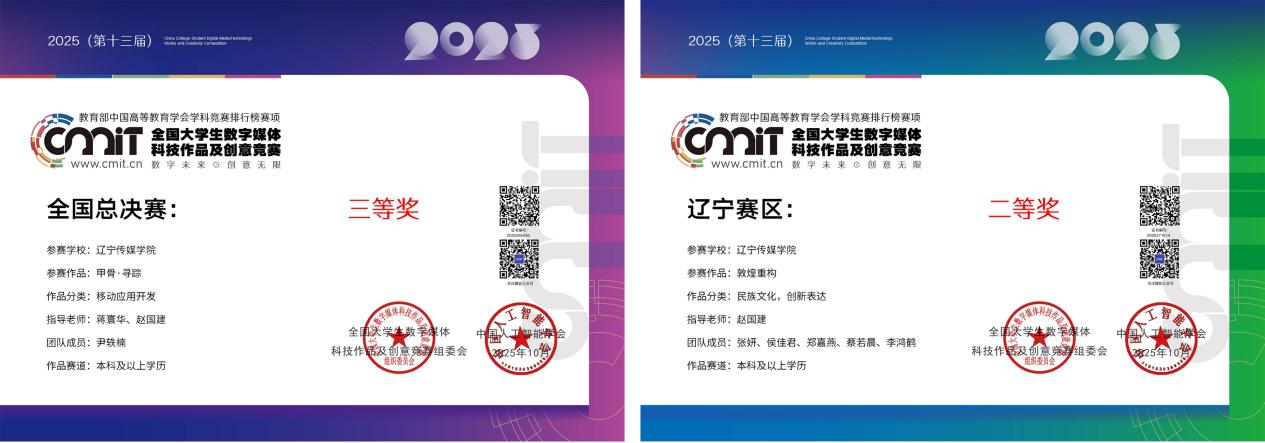 AI 数媒学院学生在相关专业赛事中表现优异,成功斩获多项荣誉奖项。