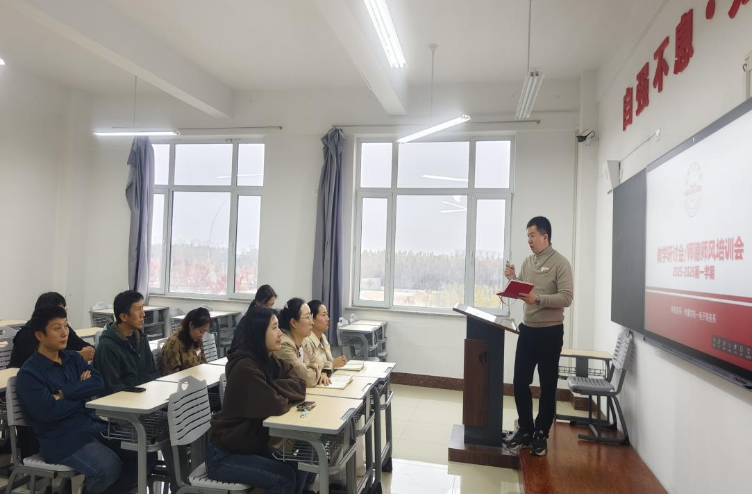 为深入贯彻落实立德树人根本任务,将师德师风建设融入教育教学全过程,电子商务系于2025年10月17日在系部会议室召开师德浸润专题研讨会。本次会议聚焦 “师德浸润课堂” 核心议题,旨在通过集体研讨明确实践路径、创新方法,推动师德教育与专业教学深度融合。电子商务系全体教师参加会议,系主任胡翔翼主持会议。